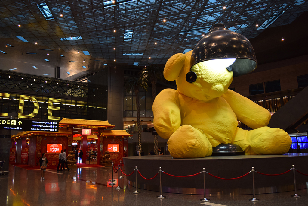 Wylot miałem z Brukseli. Aby się do niej dostać, znalazłem sobie tanie połączenie lotnicze z Berlina. Nie chcąc jednak ryzykować i lecieć na styk wybrałem samolot lecący wieczorem dnia poprzedzającego mój lot do Indii. Noc postanowiłem noc spędzić na lotnisku. Miałem już przyjemność spać kiedyś na brukselskim lotnisku i wiedziałem, że siedzenia tam nie mają podłokietników, dzięki czemu można rozłożyć się na kilku na raz i wygodnie spędzić noc. Jednak okazało się, że nie wychodząc z tej strefy dla osób odprawionych można się przespać na kanapie! No prawie jak w hotelu :) Tak więc wyspany, po porannej toalecie wsiadłem do Dreamlinera linii lotniczych Qatar Airways lecącego do Doha w Katarze. Samolot wypas. Niestety przesiadka w Doha trwała zdecydowanie za krótko żeby móc tam coś pozwiedzać, ale duże wrażenie zrobiło na mnie lotnisko. Najładniejsze lotnisko na jakim byłem. Bardzo nowoczesne, ze skórzanymi siedzeniami dla pasażerów, z prawdziwymi palmami wewnątrz, pełne dzieł sztuki użytkowej, a między terminalami jeździ górą bezdźwięczna kolejka.